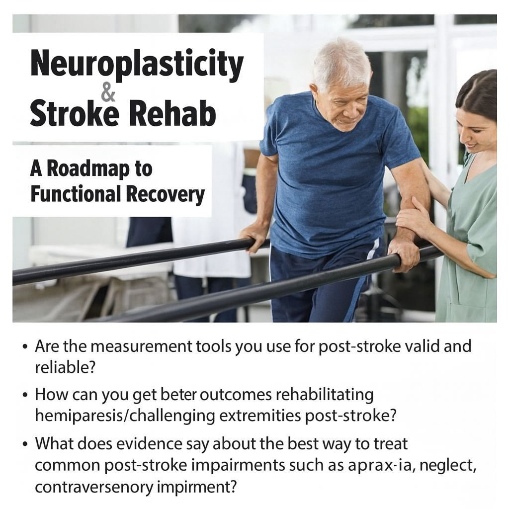 Get the roadmap to stroke rehab that actually leads to recovery in this impactful course. Discuss common impairments seen in stroke (e.g., apraxia, neglect, pusher syndrome) and the interventions based on current principles of neuroplasticity to treat these impairments. Evidence-based treatments of the hemiparetic/hemiplegic upper and lower extremities after stroke will be covered as well. By the end of the course, you will walk away with the tools and resources needed to effectively improve outcomes for your stroke patients.